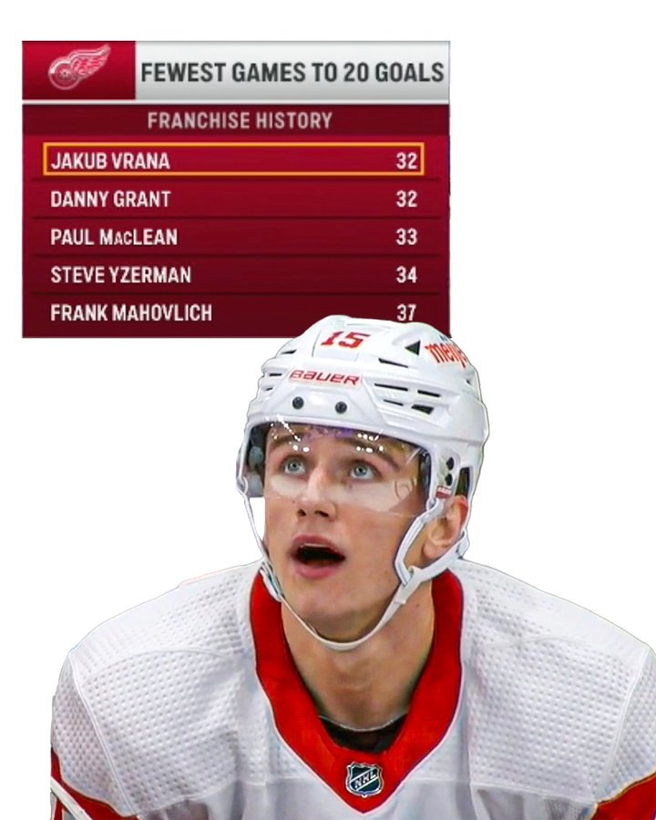 Jakub Vrana Ties Detroit Red Wings Record After Scoring 20 Goals In First 32 Games